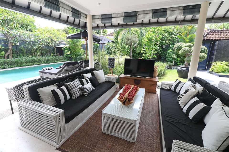Located within the prestigious Villa Bloom complex, this villa is one of four distinct private residences. The complex features beautifully landscaped gardens and tranquil water features, ensuring a serene environment complemented by 24/7 security. With Seminyak beach just a leisurely stroll away, your luxurious sanctuary is perfectly situated for both relaxation and adventure.